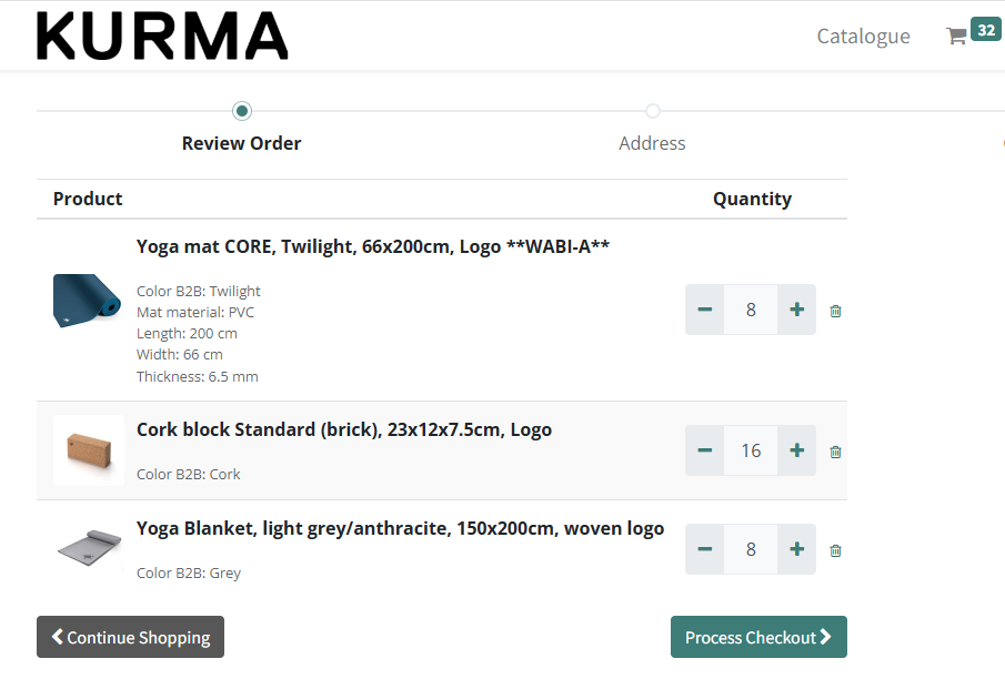 2. Search for the needed products, enter the quantities to order and click on shopping cart button.