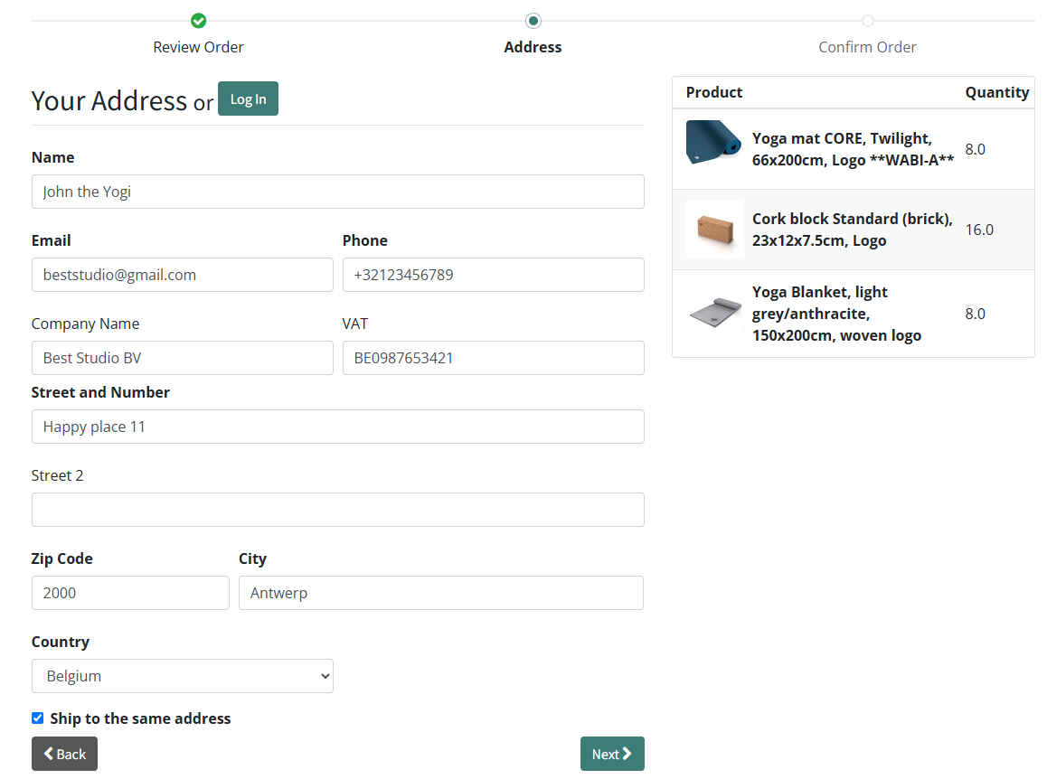 4. Fill in your invoicing and delivery address, then click on “Next” button